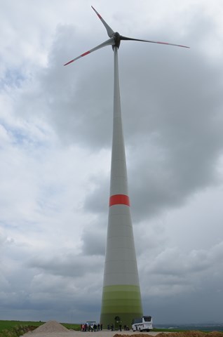 Jeder der mitgereisten Obergrombacher konnte sich davon überzeugen, dass der Zufahrtsweg zur Anlage die Größe eines normalen Forstweges nicht überschritt. Der Durchmesser des Fundaments beträgt 19 Meter mit einer Tiefe von knapp 3,50 Meter. Direkt daneben wächst aktuell an drei Seiten des Windrads Getreide. Die vierte Seite zum Zufahrtsweg muss offen bleiben, um für evtl. notwendig werdende Reparaturen einen Kran aufstellen zu können. Die Freifläche dort umfasst ca. 1800 Quadratmeter und ist - wie der Zufahrtsweg auch - mit einem Belag aus Mineralbeton geschottert. Die Anlage produziert über 3 Millionen Kilowattstunden im Jahr, was bedeutet, dass mit einem Windrad dieser Größenordnung ein Ort wie Obergrombach rechnerisch mit Strom versorgt werden könnte. Die energetische Amortisation dieser Anlage ist bereits nach 9 – 16