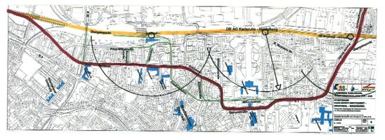 Interessant ist in diesem Zusammenhang, dass der KVV zwar seine ursprüngliche Planvorstellung wegen des Widerstands der Bruchsaler Stadtverwaltung verwarf. Nicht beerdigt wurden allerdings die städtebaulichen Eingriffe - siehe oben.